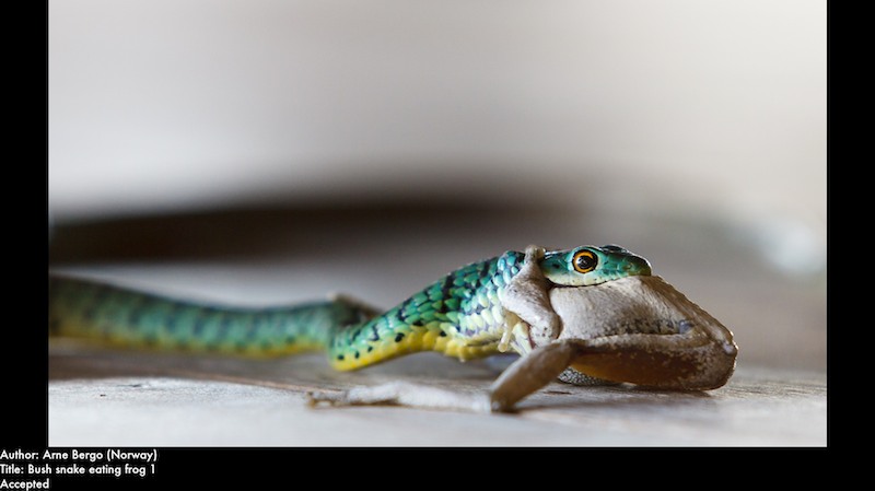 Title: Bush snake eating frog 1